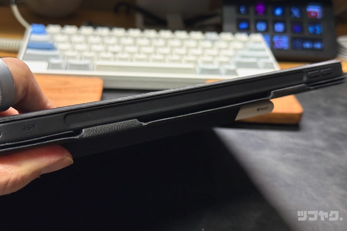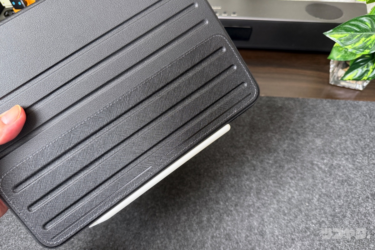 アウターカバーにはApplePencilやサードパーティー製のスタイラスペンなどの収納も。