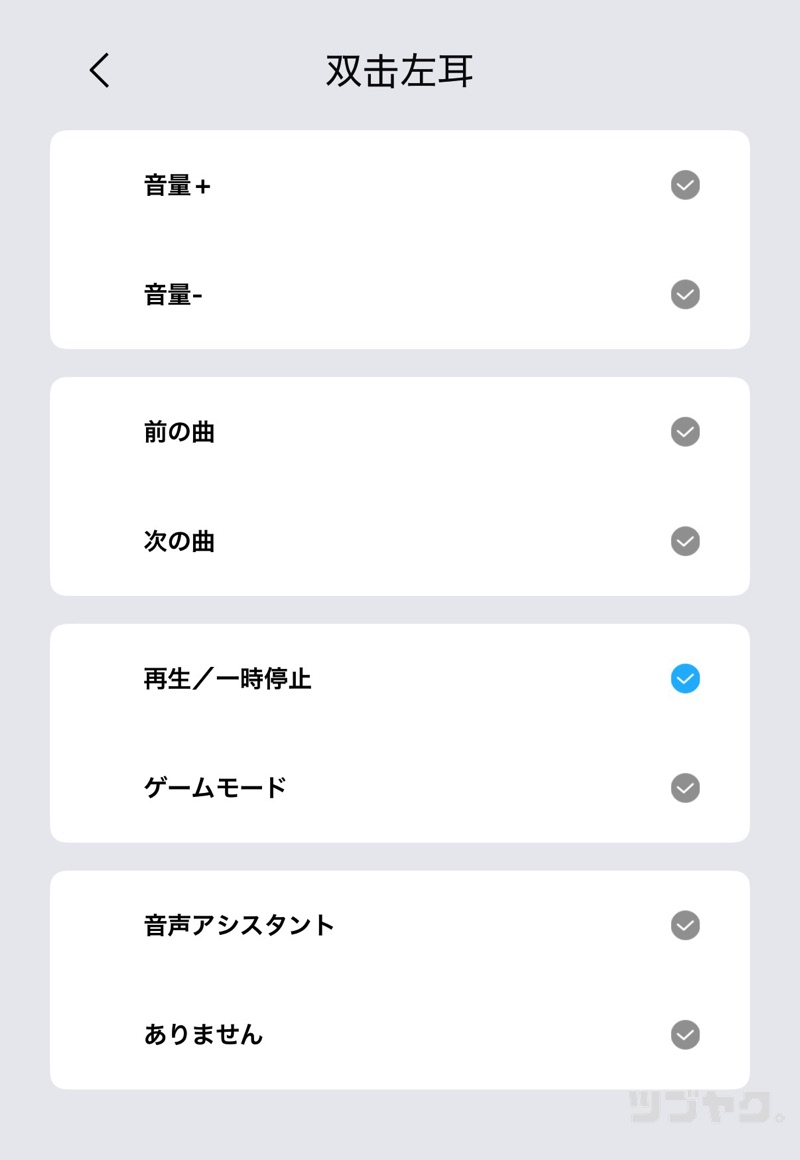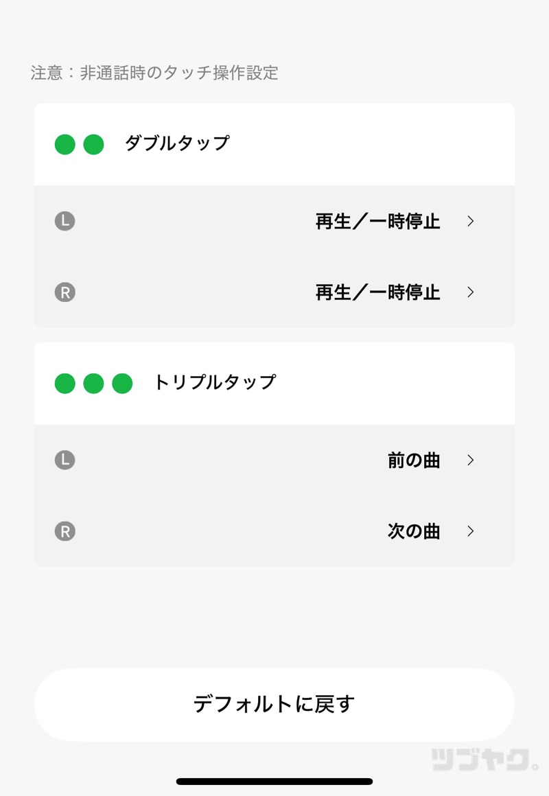 それもあってか、操作パターンは「2タップ/3タップ」×「左/右」の4パターンのみ。「1タップ/長押し」の設定は不可となっています。