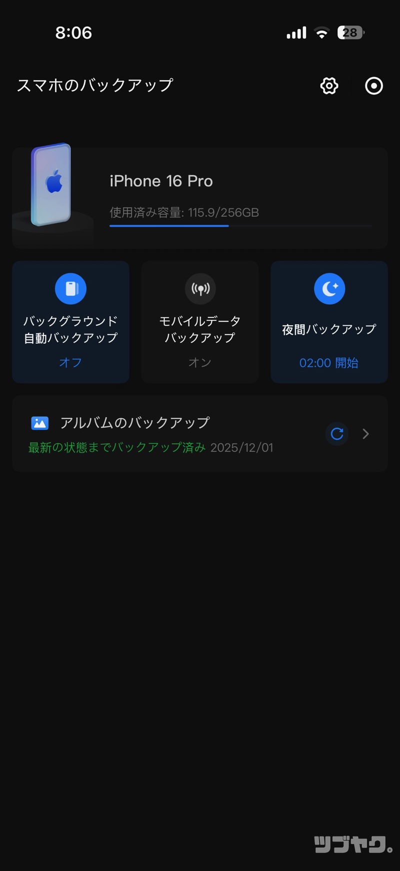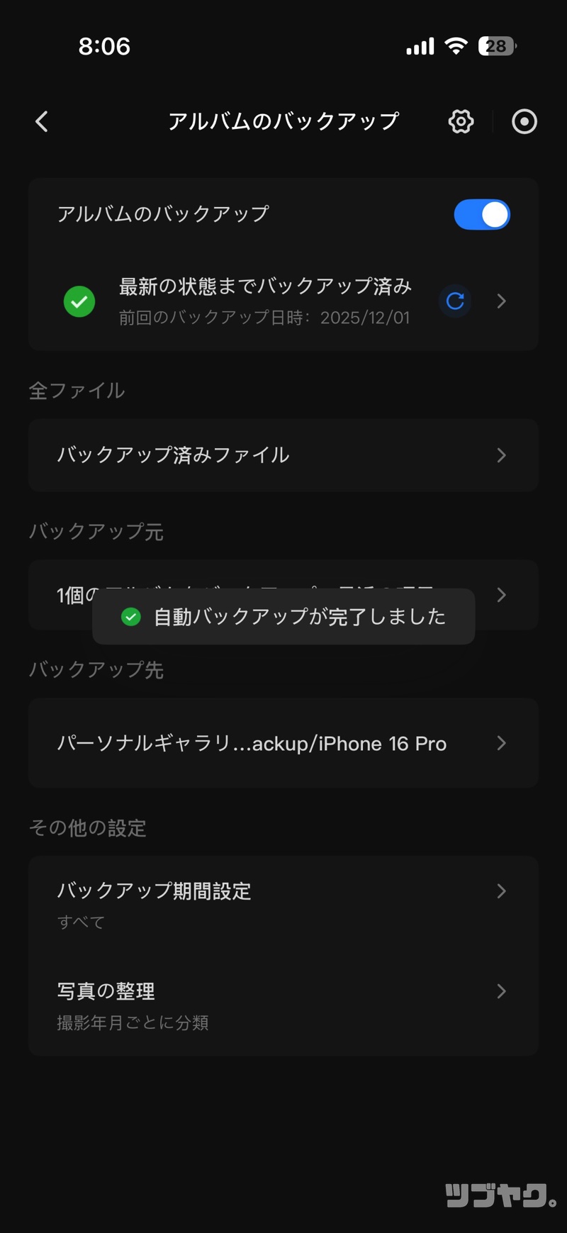 アルバムの自動バックアップを設定しておけば、iPhoneのストレージ不足のに悩みも解消します。